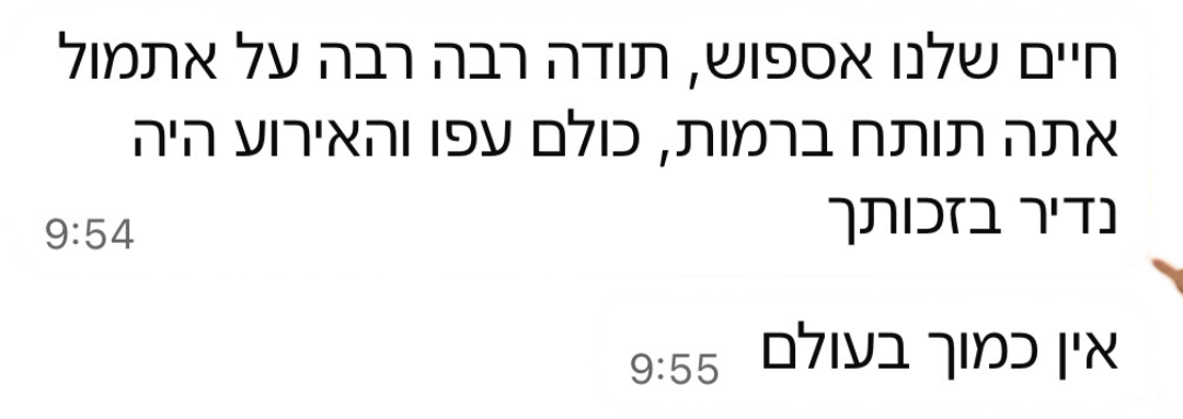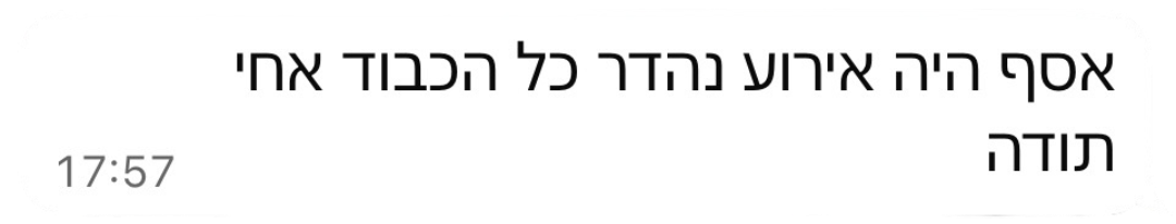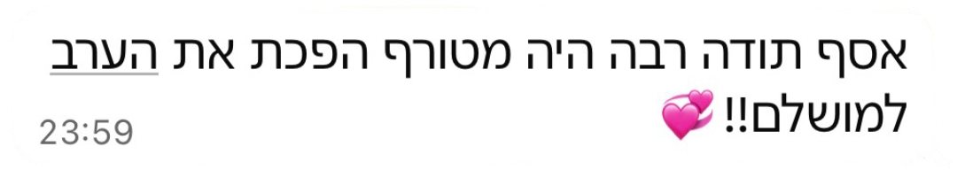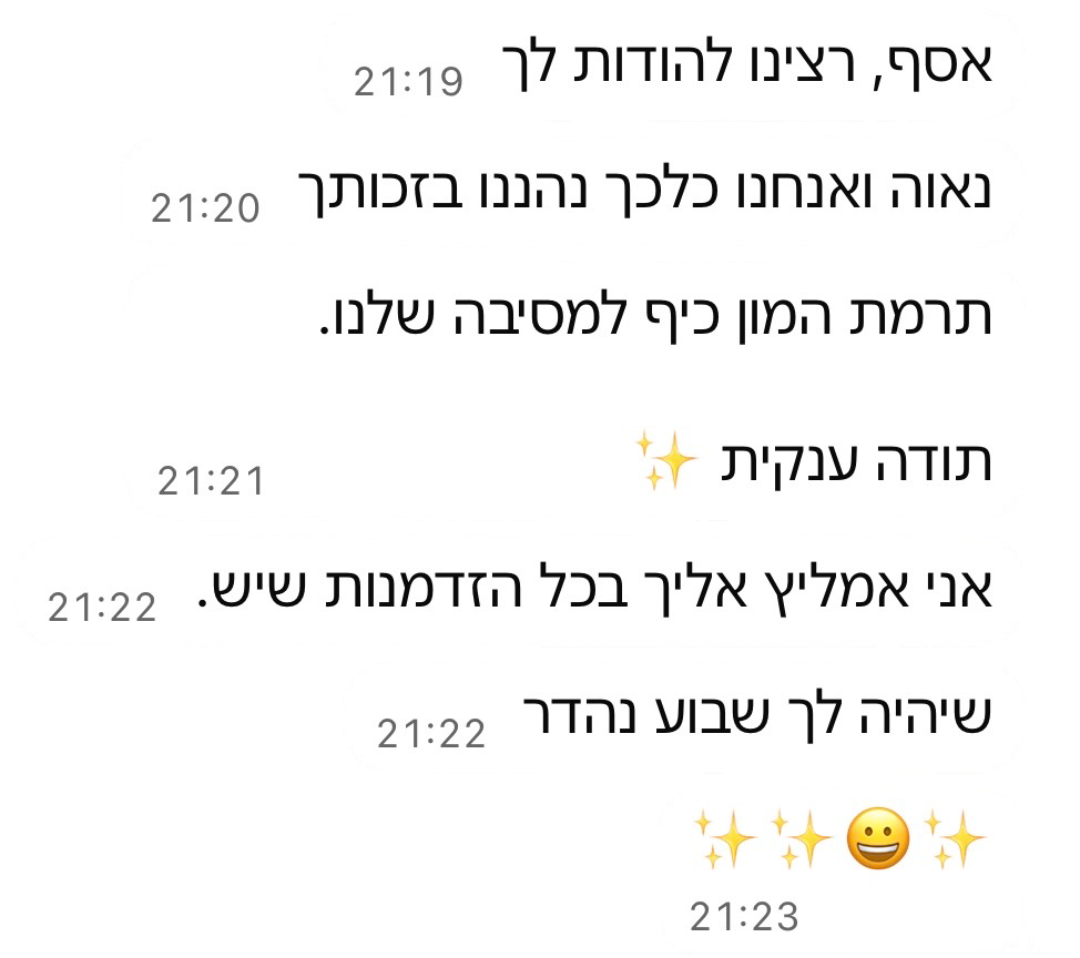 אני איתכם מתחילת האירוע ועד לסיום המסיבה – בלי שעון ובלי לחץ. המטרה שלי היא שתסיימו את הערב עם חיוך גדול.